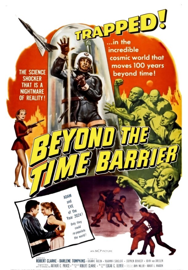 实验飞行员测试一架新型火箭动力飞行器(实际上是康维尔 F-102 拦截机),成功飞向未来并降落在他离开的现已荒废的空军基地。他最终来到了一座城市,人们怀疑他是间