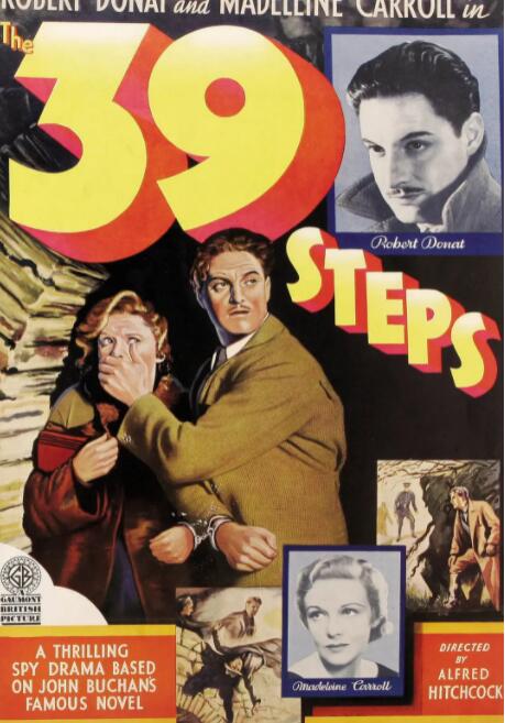 音乐厅中传来枪声,观众们一片惊慌。一位外国女子(露西•曼娜海姆饰)询问理查德•汉内(罗伯特•多纳特饰)是否可以在他家中过夜。次日该女子在被杀之前告诉理查德必须阻止间谍组织“三十九级台阶”将国家机密偷偷送出英国。汉内为了证明自己并不是杀人凶手无奈前往苏格兰高地寻找线索,在火车上他寻求一位叫做帕梅拉(玛德琳•卡罗尔饰)的金发年轻女子帮助,但她却马上向警察告发了他。他找到了“三十九级台阶”的领导人乔丹教授,但随即被陷害入狱。侥幸逃脱后又由于帕梅拉的告发被两位伪装成便衣警察的人带走,并且他们还把帕梅拉和他铐在了一起。于是两人携手逃脱了出来并取得了互相的信任,然后他们再次回到音乐厅,汉内看到了上次就见过的表演。他向号称可以回答任何问题的“记忆先生”(怀特•沃森饰)提问:“什么是三十九级台阶“,于是…… 希区柯克曾说“记忆先生“是他最喜欢的角色之一,这个角色建立在一个名叫达塔斯的真人基础上,他自己小时候在伦敦看过他的表演。